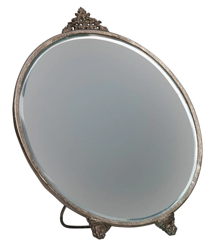Een mooie romantische staande spiegel met een knipoog naar het verleden, dat is de BePureHome Posh spiegel. De spiegel is gemaakt van metaal in de kleur antique brass en is 26 cm hoog, 22,2 cm breed en 1 cm diep. Als de spiegel uitgeklapt staat heeft hij een maximale diepte van 10 cm. De Posh spiegel staat leuk op een antique brass sidetable, of in een vitrinekast. Ook verkrijgbaar in een ovale variant.