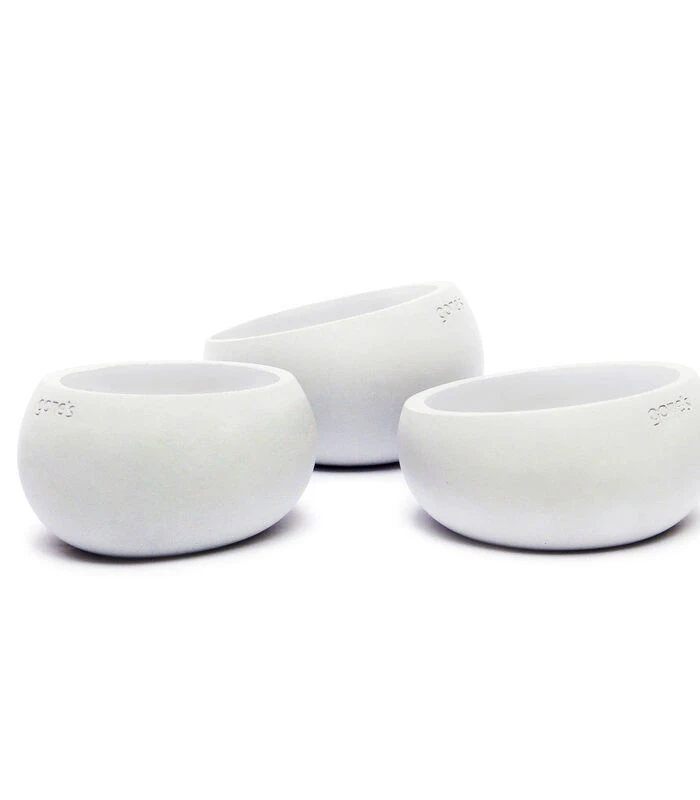 Deze samenstelling van drie Brut–fotophores in ecologisch mineraal beton van het ecologisch verantwoorde merk Gone’s wordt artistiek gemaakt in Frankrijk, in onze werkplaats in Lyon. Het resultaat van experimenten rond beton en ballonnen, het hervat natuurlijk hun vormen! Kleine containers met drie verschillende vormen voor kaarsen en kleine planten zoals cactus of kleine voorwerpen. Deze compositie is gemaakt van natuurlijk beton met Tokyo Grey Black interieurlak.