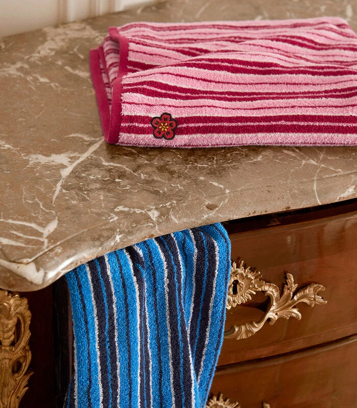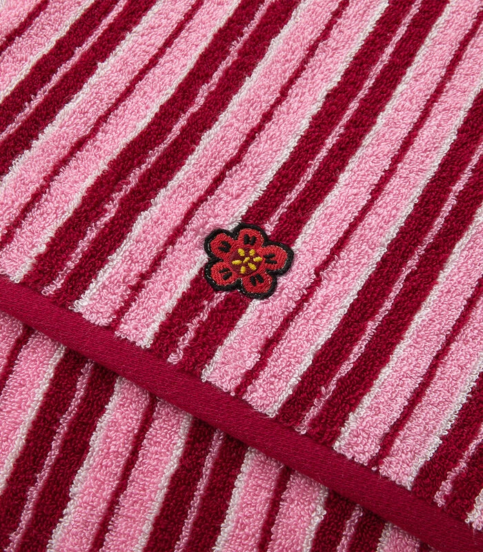 K Club handdoek, jacquard gestreept en geborduurd met de emblematische bloem van Japan en Kenzo’s K Boke collectie, de Boke.
