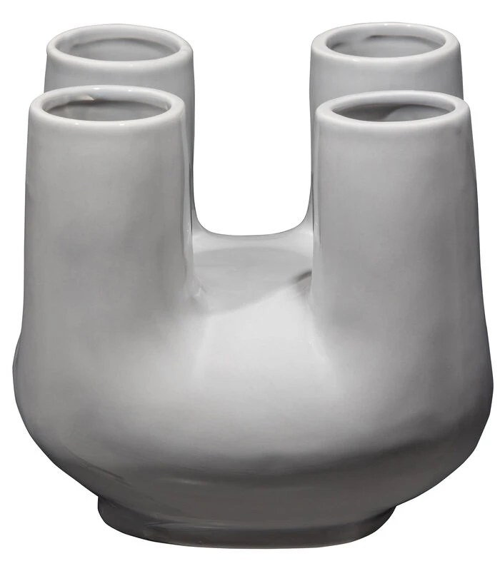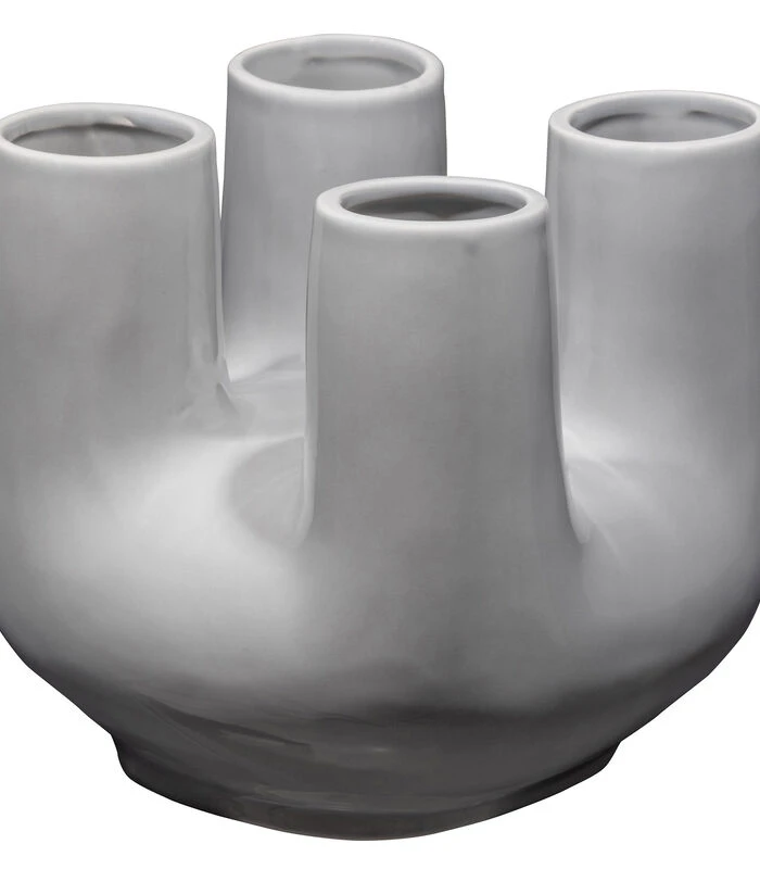 De trendvolle Loua vaas komt uit de collectie van het Nederlandse interieurmerk WOOOD. De Loua heeft een gladde textuur en is afgewerkt in een matte grijs kleur. De Loua vaas heeft vier openingen en is volledig hol binnenin. Hierdoor is Loua perfect voor het insteken van een mooie combinatie (droog)bloemen.