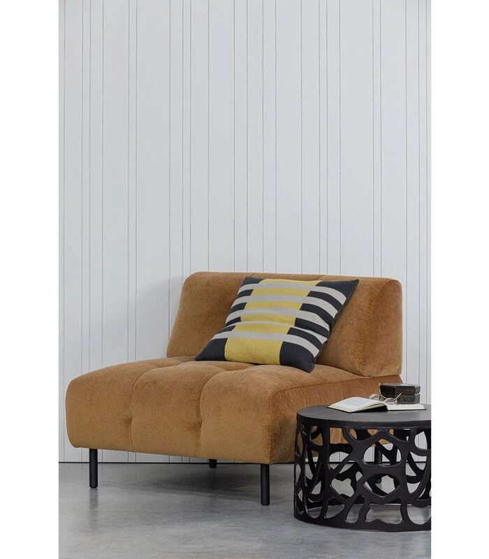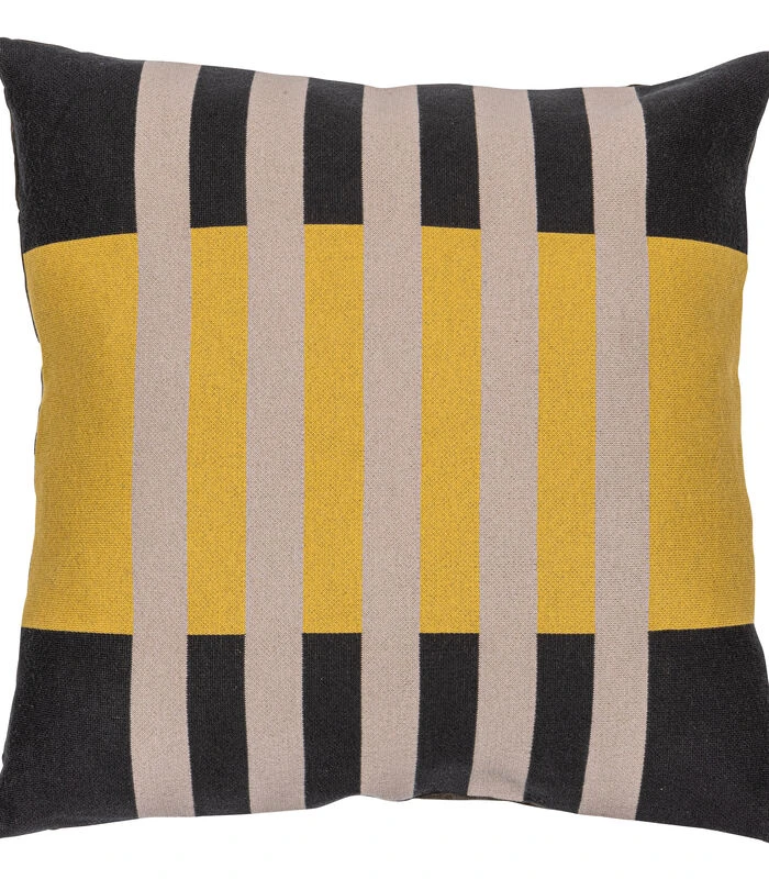 Voeg een statement sierkussen toe aan jouw zithoek. Sierkussen Micky heeft een formaat van 50×50 cm. De kussenhoes is gemaakt van 100% katoen en heeft een grafische print in de donkere cast iron kleur en een warme geel– en zandtint. De vulling bestaat uit 100% polyester.