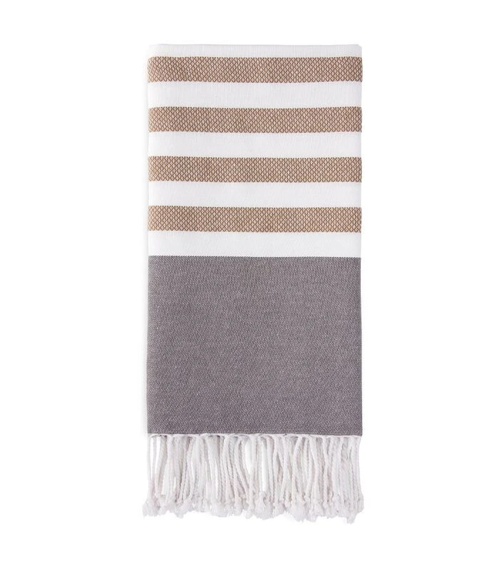 Deze stijlvolle hamamdoek met streepmotief is gemaakt van 100% katoen, is heerlijk licht en heeft een royale afmeting. De doek is ideaal voor de sauna of om mee te nemen naar het strand. De verfijnde herringbone structuur geeft de fouta een unieke uitstraling. Uitgevoerd in natuurlijk materiaal van optimale kwaliteit, heerlijk licht maar super stevig. De fouta is afgewerkt met franjes die je helemaal aan het zomerseizoen doet denken. 100% katoen. 100×180 cm