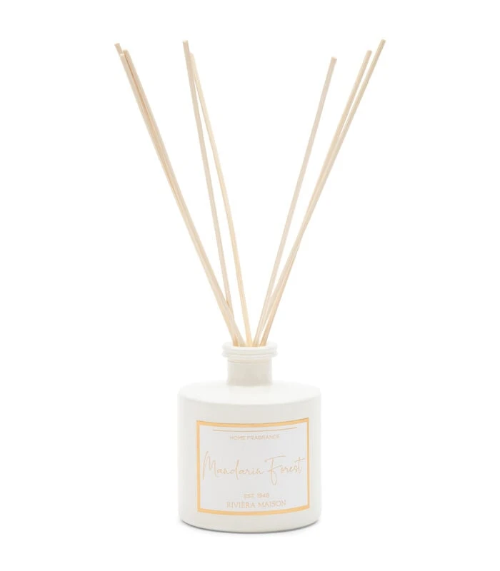 De kaars zit in een glazen pot en brand wel 32 uur. De geurstokjes geven continu een citrusgeur af, waar een scherpe neus de geuren mandarijn, basilicum en agave in kan ontdekken. Samen maken zij de geur Mandarin Forest.