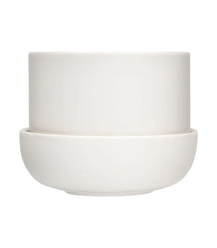 De nieuwe Nappula bloempot met schotel vormt een prachtige aanvulling op de geliefde Nappula collectie van designer Matti Klenell. Het tijdloze design van de gestroomlijnde pot en de ronde schotel is ideaal voor allerlei soorten planten. Het klassieke wit benadrukt het minimalistische design en past in elk interieur. De Nappula bloempot met schotel nodigt je uit om de natuur in huis te halen. Een tijdloze interieuraccessoire die zowel alleen als samen met andere Nappula bloempotten de ruimte opfleurt. Een perfect geschenk voor de feestdagen, een verjaardag, een housewarming of als bedankje voor je gastvrouw, vooral in combinatie met planten of seizoensbloemen.