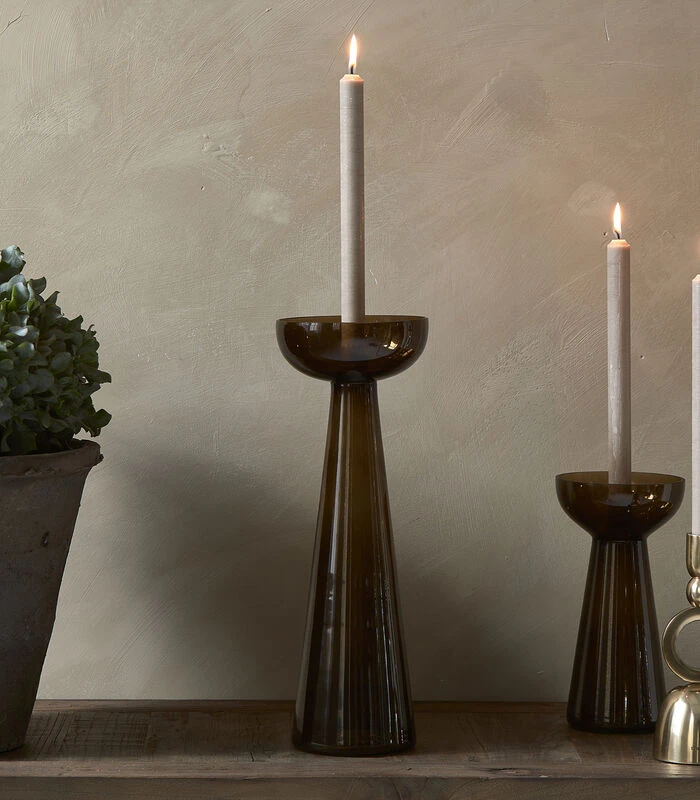 Kaarshouder Glas, Hoge Kandelaar – Amber Stone – Bruin – Maat L