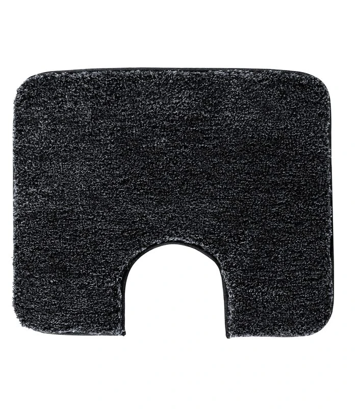Deze tijdloze WC mat met uitsnijding is hoogpolig en voelt heerlijk zacht aan de voeten. De mat is gemaakt van hoogwaardig acryl garen. Deze kwaliteit behoudt steeds mooi zijn volume, vorm en kleur. De anti–sliplaag zorgt ervoor dat de mat prima blijft liggen. De mat heeft een melange kleur. Er zitten twee tinten donkergrijs in verwerkt, voor een luxe uitstraling..