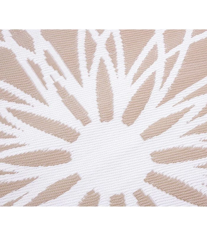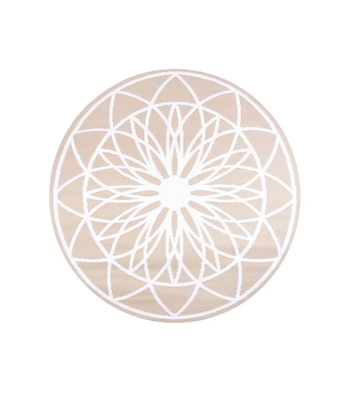 Tapijten enkel voor binnenshuis? Niets is minder waar! Zo kun je jouw terras, balkon of tuinhuisje voorzien van een buitentapijt, dit kan met het ‘outdoor tapijt Fairytale’. Dit ronde kleed heeft een bruine kleur met een mandala patroon en is gemaakt van polypropyleen. Polypropyleen voelt een beetje als kunstof en heeft een neutrale afwerking. Dit materiaal is waterbestendig en daarom geschikt voor buiten. Het vloerkleed kun je op beide kanten neerleggen, een bruin kleed met witte accenten of juist net andersom, een wit kleed met bruine accenten. De afmetingen van dit tapijt zijn Ø150 cm. Door het patroon in het vloerkleed krijgt je ruimte een moderne Bohemian uitstraling. Een outdoor tapijt staat minstens even gezellig als het vloerkleed dat je binnen in huis hebt liggen!