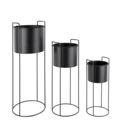 PRESENT TIME Plantenpot Set Essence – IJzer Zwart – Rond – 80x28cm & 28x23cm & 50x19cm