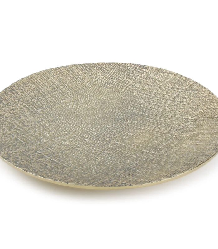 Deze zacht Gouden decoratieve schaal met wondermooi papyrus reliëf doet je zonder twijfel wegdromen. Een absolute must have voor elk interieur.