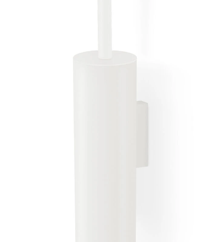 Minimalistisch, strak en basic. De Tubo toiletborstel van Zack in wit gepoedercoat staal is terughoudend aanwezig in de modern ingerichte badkamer.